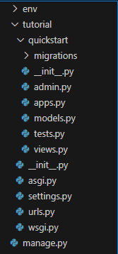 django project 이름으로 tutorial을 하고 app 이름을 quickstart로 지정하겠습니다
