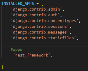 그리고 기초인 rest_framework를 django INSTALLED_APPS 에 등록해주셔야 합니다.