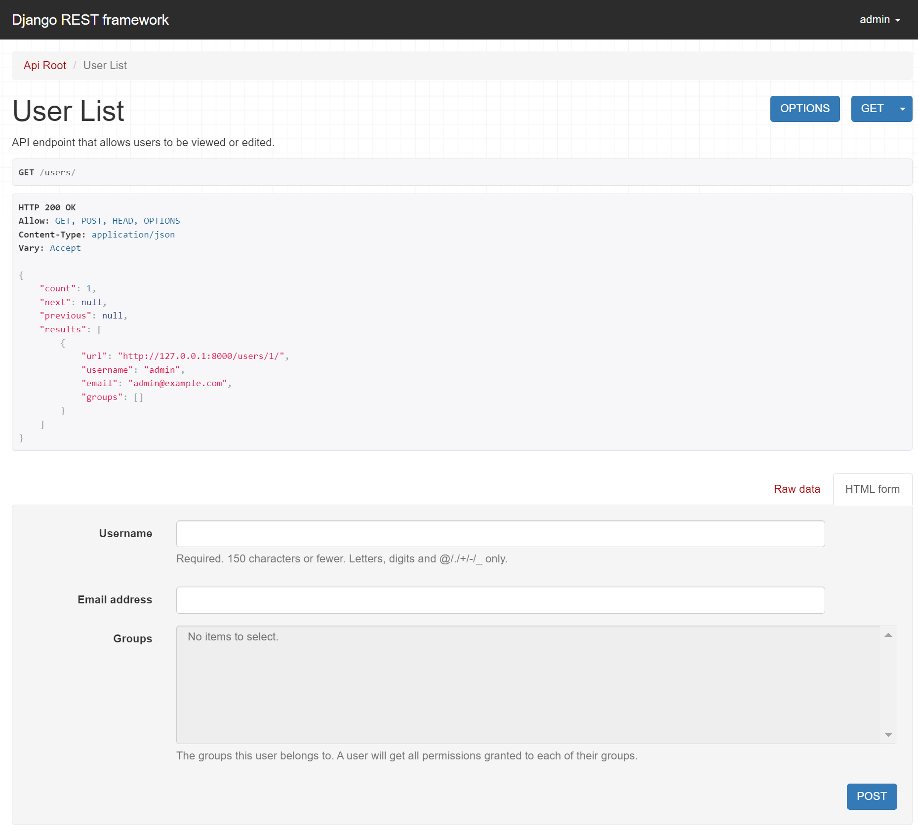 {"count":1,"next":null,"previous":null,"results":[{"url":"http://127.0.0.1:8000/users/1/?format=json","username":"admin","email":"admin@example.com","groups":[]}]}